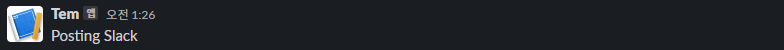 이제 Slack의 채널로 이동하면 생성한 App의 이름과 'Posting Slack'의 메시지가 전달된 것을 확인할 수 있습니다.