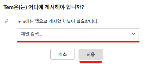 이제 Slack의 Workspace에 연동할 채널을 선택하고 허용을 진행하면 됩니다.