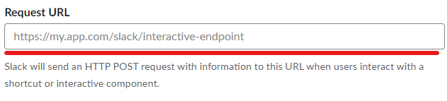 예를 들어 'http://example.com/slack/request'와 같이 작성하면 됩니다.