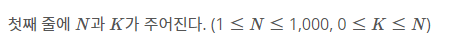 단 N의 값이 0이면 dp[N][K]의 값은 1이 됩니다.