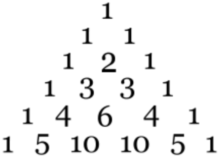 이항 계수는 이항 계수의 수를 나열한 삼각형 모양의 파스칼 삼각형이 있습니다.