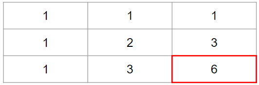 2차원 DP 배열을 만들기 위한 점화식을 도출하여야 하는데 점화식은 DP [i][j] = DP [i-1][j] + DP [i][j-1]을 이용하여 배열을 채워 나갈 수 있습니다.