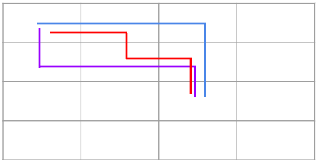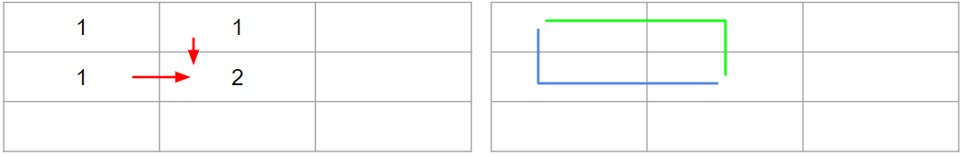 - 파란색 선인 (0,0) -> (0,1) -> (1,1) 순으로 이동하여 (1,1)로 가는 방법
