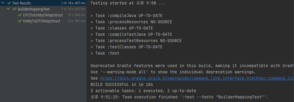 dependencies { implementation 'org.mapstruct:mapstruct:1.4.2.Final' annotationProcessor 'org.mapstruct:mapstruct-processor:1.4.2.Final' } - 만약 Lombok과 같이 사용하는 경우