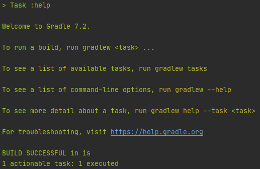 명령어 수행 결과 BUILD SUCCESSFUL을 확인할 수 있습니다.