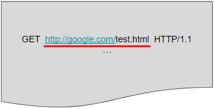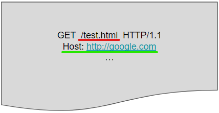Host 헤더를 이용하여 Host를 지정하고 리퀘스트 URI에는 리소스 위치만 작성하여 전달합니다.