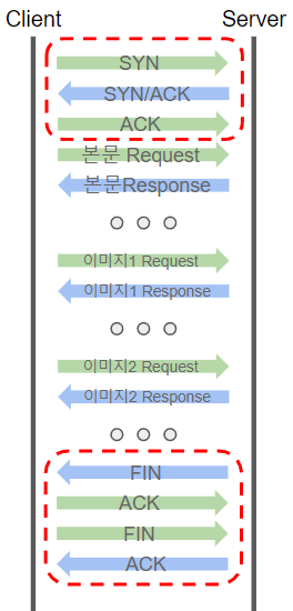 이렇게 연결을 유지하므로 여러 통신을 하더라도 반복되는 TCP연결과 종료에 대한 오버헤드를 줄이고 서버 자원을 절약할 수 있게 되었습니다.